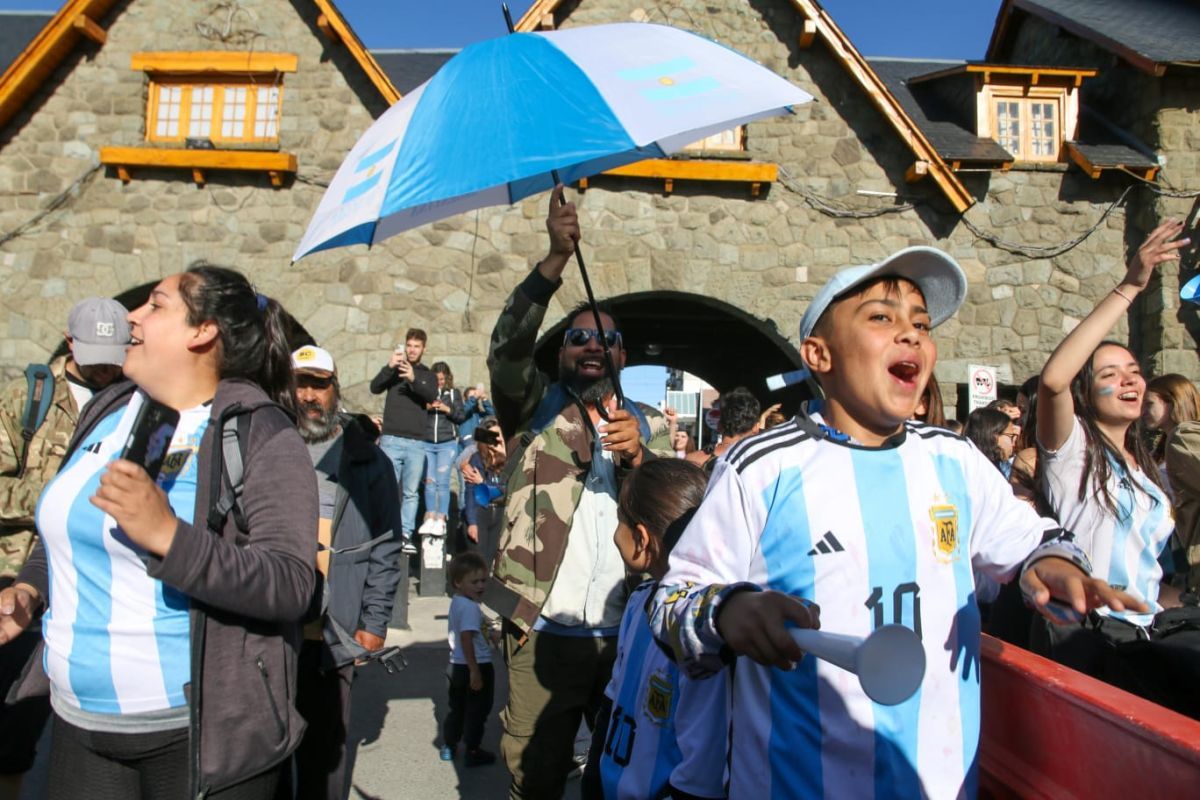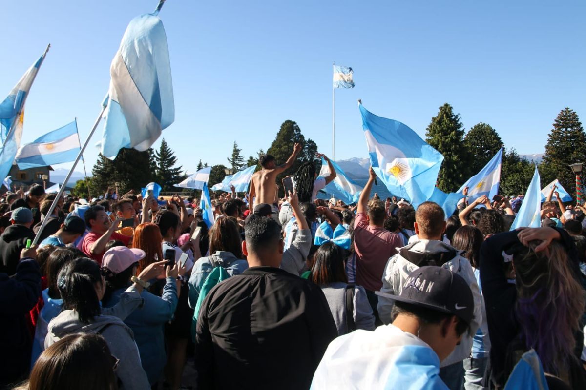 Los festejos no se hicieron esperar en la ciudad. Muchos quienes no estaban en el centro se acercaron para celebrar luego de terminado el encuentro. Con bombos, banderas y camisetas, barilochenses y también turistas se unieron bajo el grito de amor por la Selección.