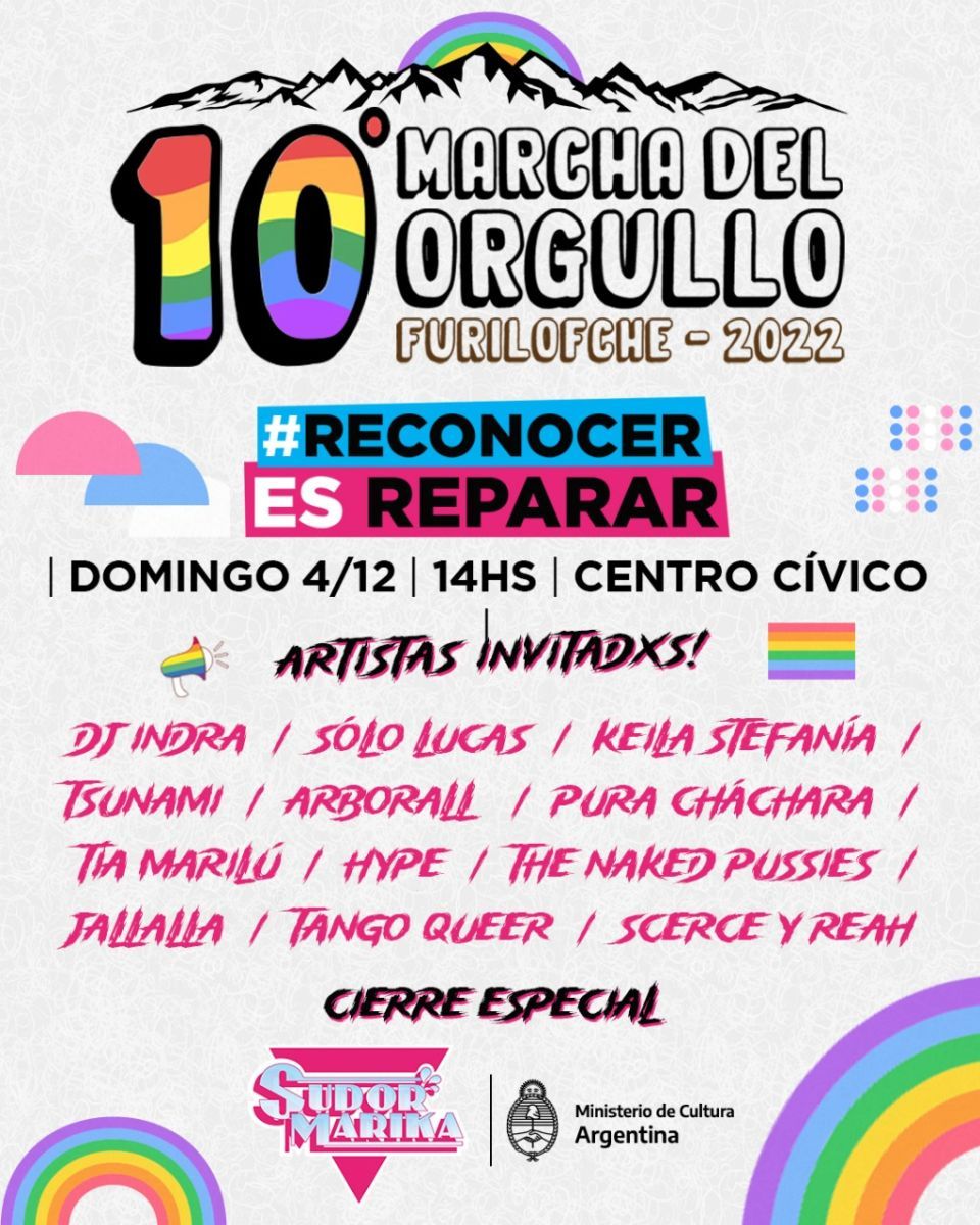 La Semana del Orgullo 2022 comenzó en Bariloche con distintas actividades que incluyen propuestas artísticas, clases y conversatorios, desde hoy jueves hasta el domingo, donde se realizará el cierre con una marcha por las calles, además de la propuesta de música y stands en el Centro Cívico.