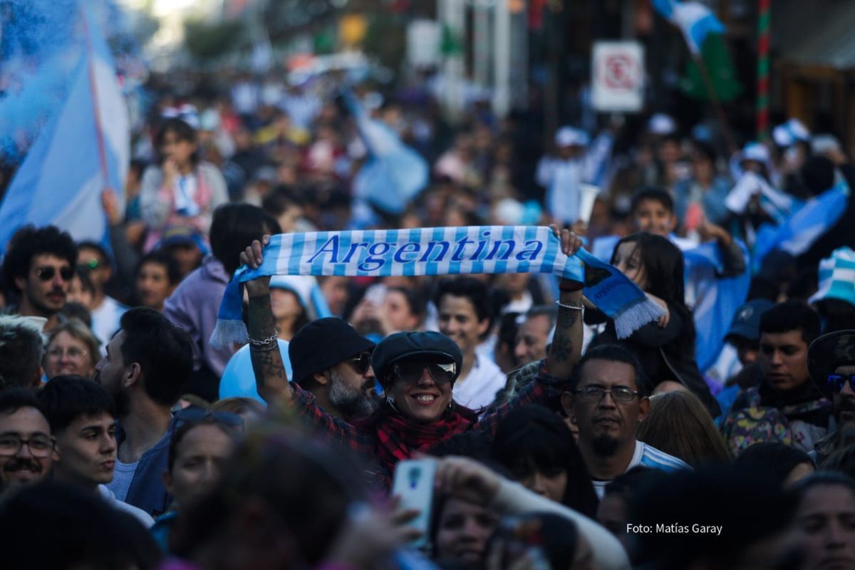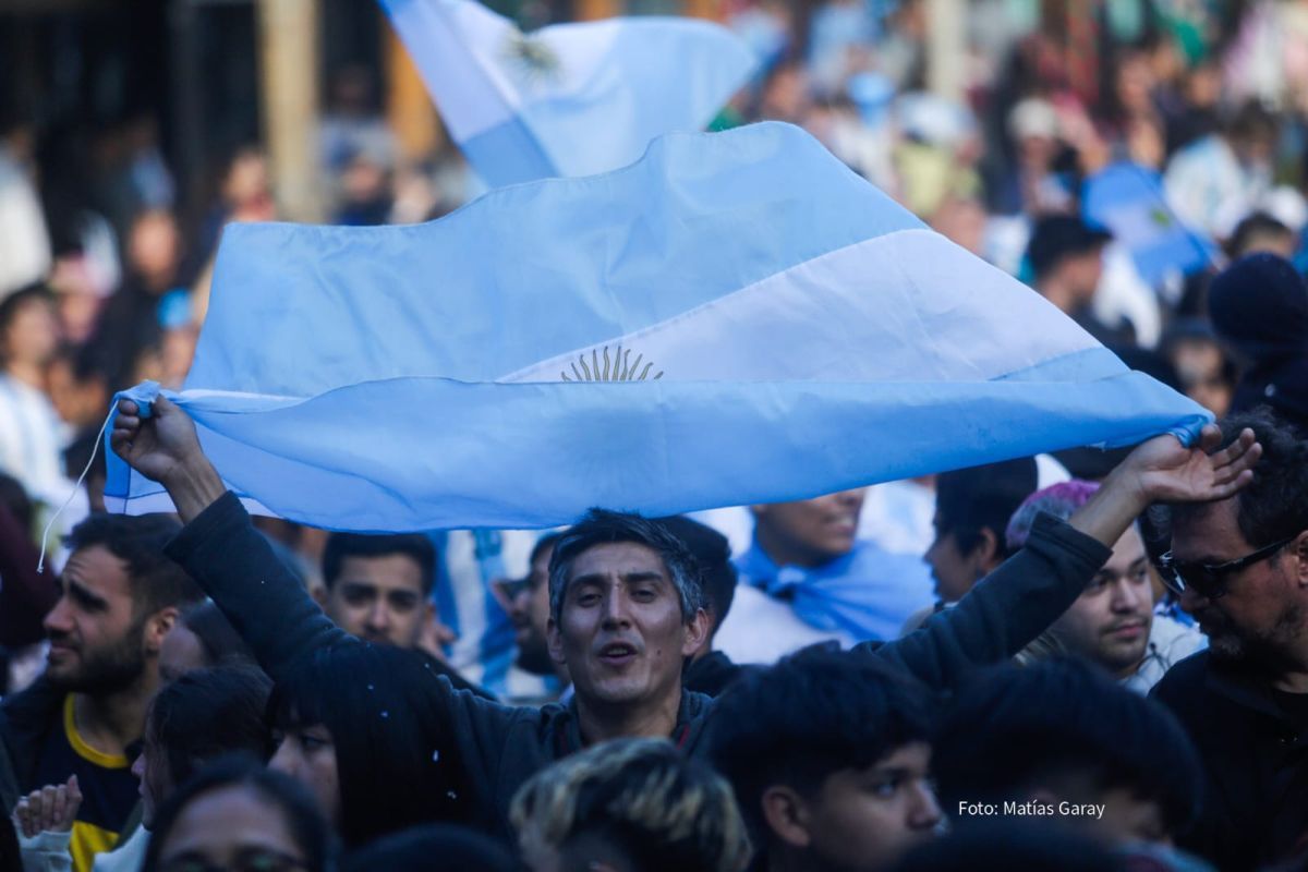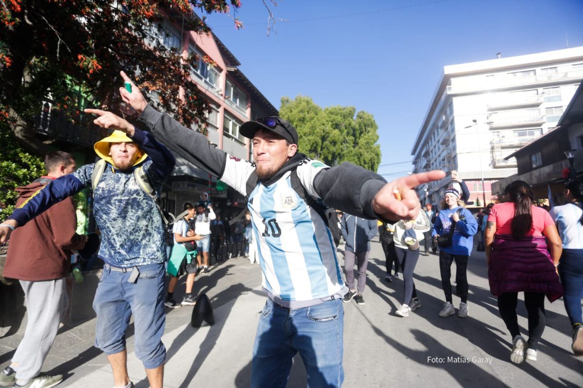 Hinchas barilochenses y turistas coparon una vez más el centro de Bariloche con bombos, banderas, camisetas y demás, para festejar el triunfo de "La Scaloneta".