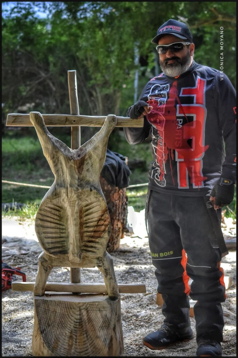Marisa Aguiar, de la Subsecretaría de Cultura de nuestra ciudad, puso a disposición de los artistas los troncos correspondientes y acompañaron el evento desde el municipio.