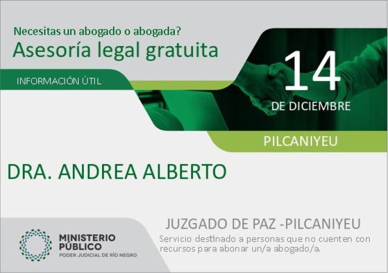 Asesoría legal gratuita en la localidad de Pilcaniyeu