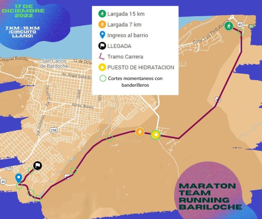 La organización informó que, durante la carrera, se realizarán cortes intermitentes y sucesivos, a medida que van pasando los corredores, en las siguientes intersecciones con la Ruta de Circunvalación (Ruta 40 Bariloche) entre las 9:00 y las 12:00 horas.