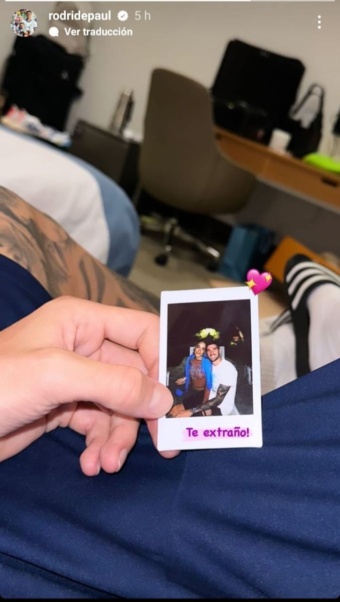 De este modo, en la imagen que publicó De Paul, se lo ve acostado en su habitación de la Universidad de Qatar y, en sus manos, sostiene una foto instantánea junto a la cantante. Esta postal está acompañada de un mensaje: “Te extraño”, escribió junto a un corazón. Minutos más tarde, la autora de “Miénteme” reposteó la foto en su propia cuenta.