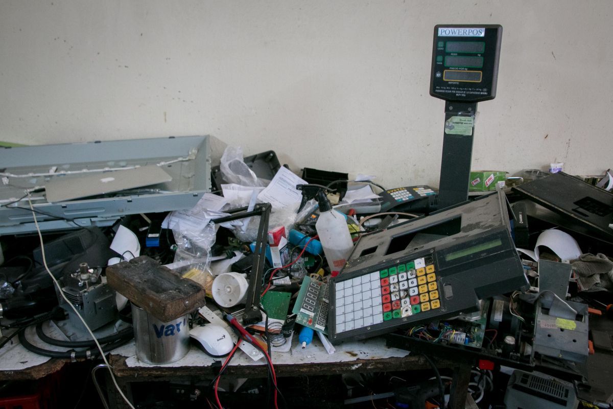 Se ven equipos de música y balanzas, pero también máquinas de escribir y tocadiscos.