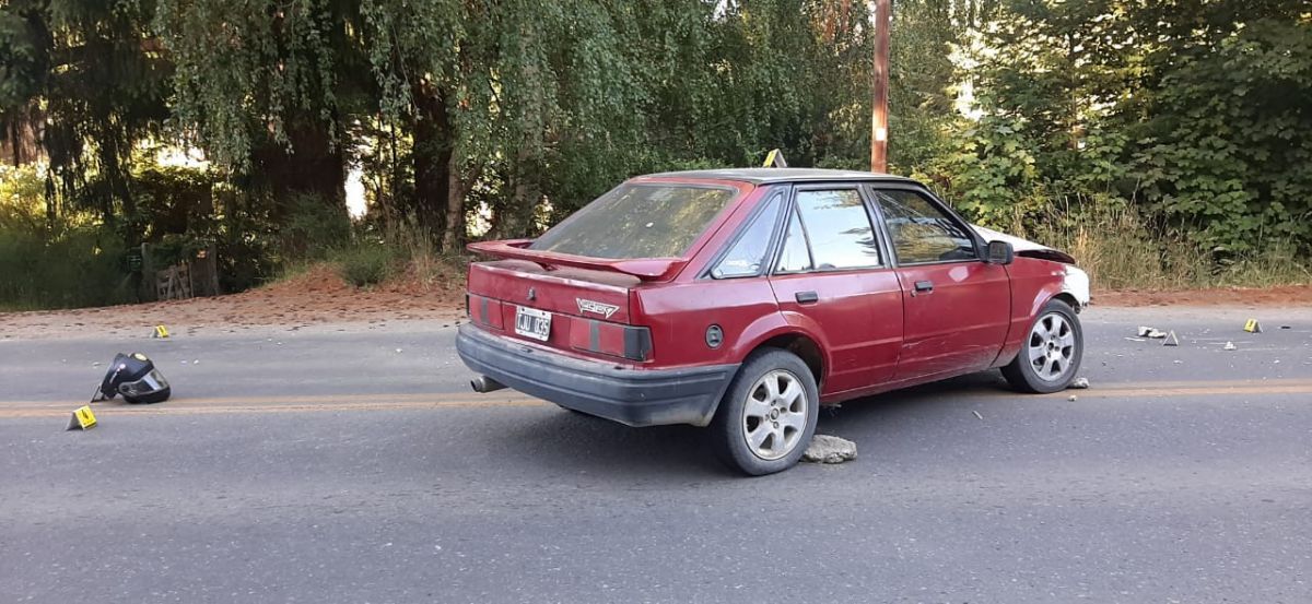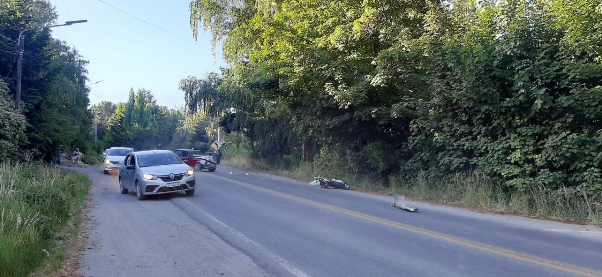 Aproximadamente a las 18.30 de este domingo se produjo un siniestro vial entre un Ford Escort y una motocicleta, en la Avenida Bustillo a la altura del kilómetro 14,200; como consecuencia, el motociclista sufrió severas lesiones que lo mantienen aún internado en el Hospital Zonal.