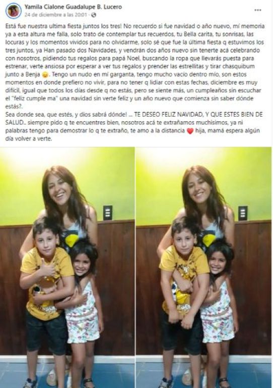 Yamila Cialone, la mamá de Guadalupe Lucero, escribió en las redes sociales una conmovedora carta para recordar las últimas fiestas que pasó con su hija.