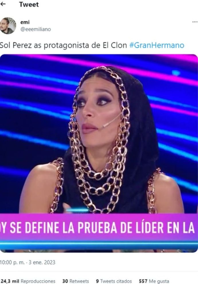 “Sol Pérez es la protagonista del Clon”, escribió uno mientras capturaba un primer plano de la panelista. También hubo varios consultando qué se puso, haciendo alusión a que no les gustó para nada la forma de vestirse que eligió junto a los vestuaristas.