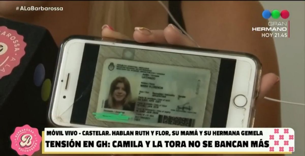 Sucede que a María Florencia la invitaron a ser partícipe de A la Barbarossa, programa en el cual se analiza todo lo que sucede en la casa de Gran Hermano. Para terminar de una vez por todas los rumores, se encargó de mostrar su documento de identidad.