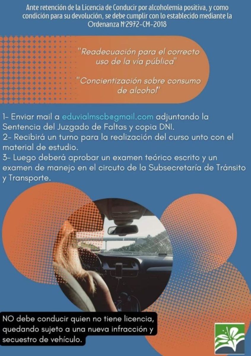 Al momento de la retención de la licencia de conducir por alcoholemia positiva, y como condición para su devolución, se debe cumplir con lo establecido mediante la Ordenanza N°2972-CM-2018 que indica la “readecuación para el correcto uso de la vía pública” y la “concientización sobre consumo de alcohol”.