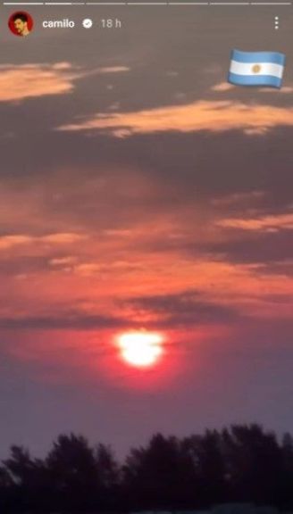 Entras las imágenes que subió en las últimas semanas, se puede ver que presenció un hermoso atardecer naranja, al cual le tomó una foto para sus historias de Instagram. En este posteo se mostró asombrado y le agregó una pequeña bandera argentina.