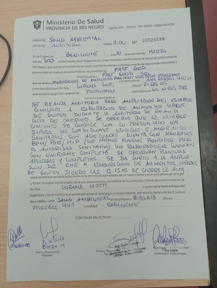 Esto INCLUYE LA CADENA DE MAILS DIRIGIDA AL REFERENTE DE INSPECCIONES DE LA INDUSTRIA ALIMENTARIA DE LA PROVINCIA, de hace un año atrás, que demuestra que ya habíamos realizado hasta la última gestión, cumpliendo con cada requerimiento.  Es más, te cuento que fui yo personalmente quien coordinó y realizó el seguimiento de ese trabajo que se inició el 8 de marzo 2022 y finalizo la última semana de mayo.  Esta cadena incluye el envío de certificaciones, resultados de análisis realizados en el laboratorio de la provincia de Río Negro, en Cinco Saltos, declaraciones juradas de proveedores LIBRES DE GLUTEN, manuales Libres de Gluten, nuestros y de proveedores, rótulos, BPM LIBRES DE GLUTEN (Buenas Prácticas Manufactura), etc.
