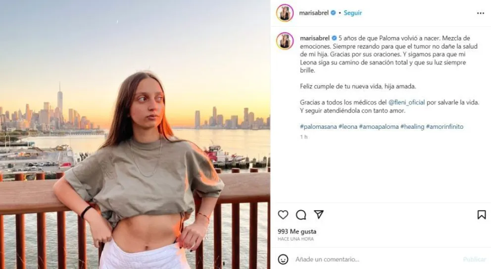 "5 años de que Paloma volvió a nacer. Mezcla de emociones. Siempre rezando para que el tumor no dañe la salud de mi hija", escribió en su Instagram. Y agradeció: "Gracias por sus oraciones. Y sigamos para que mi Leona siga su camino de sanación total y que su luz siempre brille. Gracias a todos los médicos por salvarle la vida. Y seguir atendiéndola con tanto amor. Feliz cumple de tu nueva vida, hija amada".