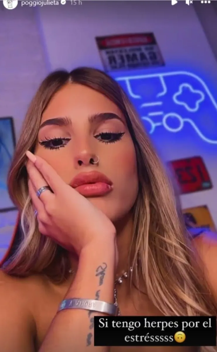 A raíz de esto, la joven mostró las consecuencias de su separación en las redes sociales y junto a un vídeo que subió a modo de historia en Instagram, Julieta mostró su bello rostro en primer plano haciendo foco en su labio inferior, el cual poseé un herpes produto del estrés de los últimos días. "Sí, tengo herpes por el estrés", expresó la ex Gran Hermano.