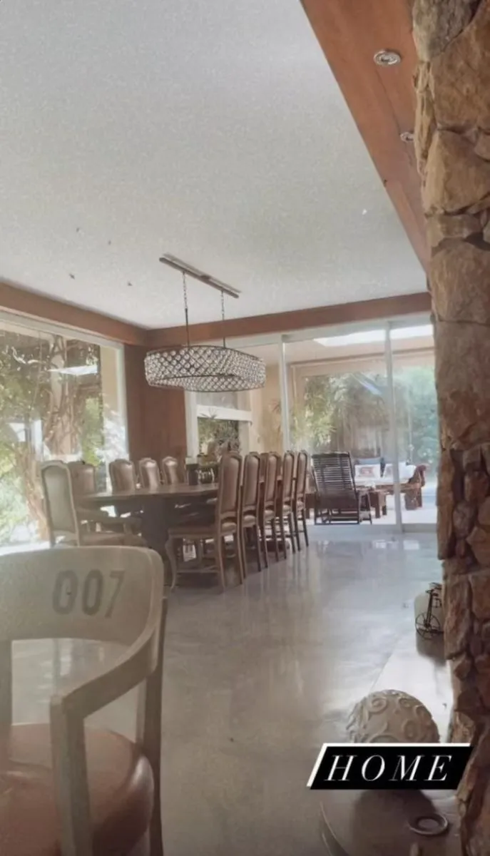 La sala de estar se encuentra acristalada, lo que permite que entre una gran cantidad de luz natural y se convierta en el gran protagonista de la sala. La famosa y su familia pasan allí varias horas, descansando, viendo películas, compartiendo comidas y recibiendo a sus invitados.