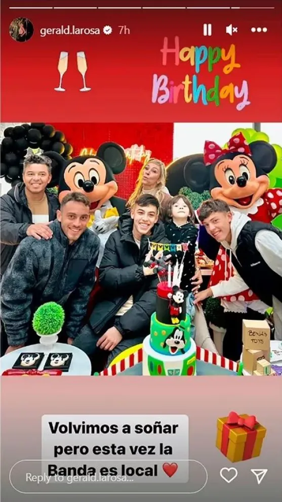 “Te amamos con el alma”, escribió Geraldine para saludar al pequeño. Dentro del festejo también estuvieron presentes Bauti Martínez Quarta, hijo del exdefensor de River y Mateo Aliendro, hijo de Rodrigo.