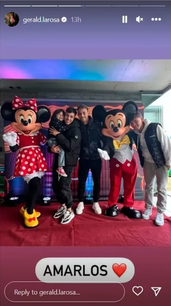 La temática elegida fue del mundo de Disney, con Mickey y Minnie junto al homenajeado al momento de cantar el Feliz cumpleaños. También se sacó una foto con Pluto. La madre del pequeño subió una storie en la que aparecen ella y el Muñeco junto al niño sacándose fotos con un aro de globos negros y un número 4 gigante.