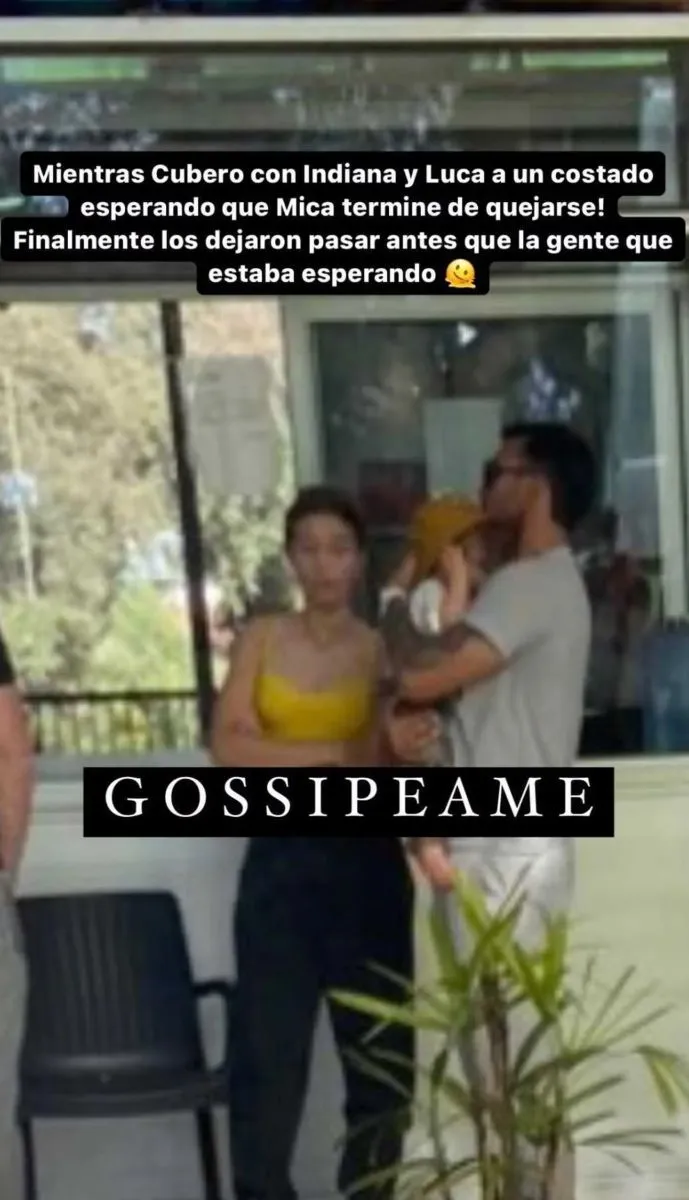 "En Salta, con 30 grados y una cola de cuatro horas para subir al teleférico, Mica Viciconte enojada a los gritos porque no tenía prioridad estando con un bebé. Mientras, Cubero con Indiana y Luca a un costado, esperando que deje de quejarse. Finalmente los dejaron pasar antes", escribió Pochi, de la cuenta Gossipeame.
