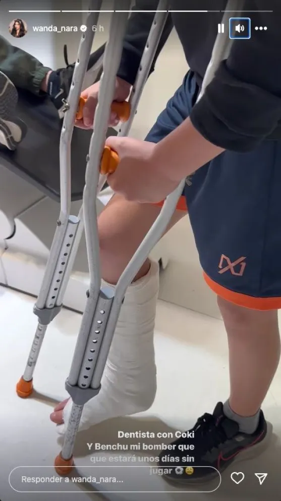 Luego, Wanda mostró a su hijo con muletas en una consulta con la odontóloga. Por lo visto, la familia tenía pactado un encuentro para que la especialista revisara a los chicos, cita a la que la famosa acudió con su esposo Mauro Icardi y sus hijos Constantino y Benedicto.