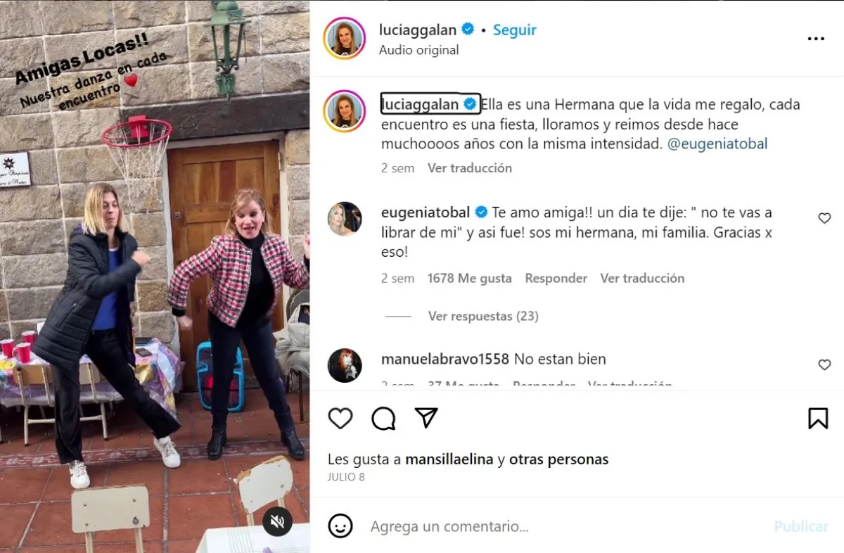 Por su parte, Eugenia Tobal le respondió en la misma sintonía: “Te amo amiga!! un dia te dije: " no te vas a librar de mí" y así fue! sos mi hermana, mi familia. Gracias x eso!”.