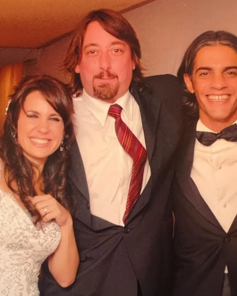 A medida que iba escribiendo, a Nancy Dupláa le aparecían los recuerdos, por lo que eligió subir una foto del día de su casamiento junto al Tano Italiano, en el cual logró que su amigo se vistiera de traje.