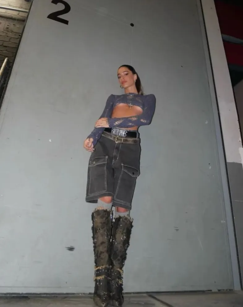 Es que la cantante se mostró con un top tejido mangas largas a los que acompañó con unas bermudas anchas. Además, en sus pies se pudo percibir que llevaba unas bucaneras al mejor estilo texanas para completar con su outfit que anunció que está de vuelta.
