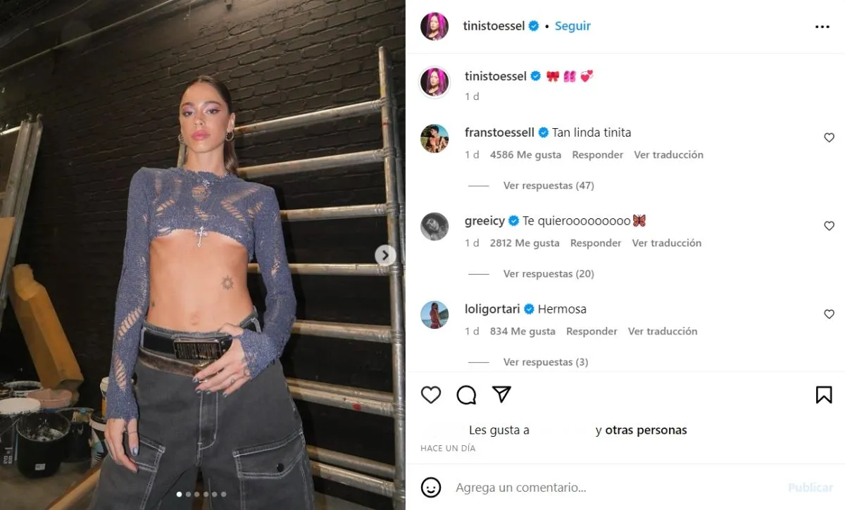 Sin embargo, se encuentra lista para volver. Con el duelo realizado y la ambición de subirse a los escenarios, Tini Stoessel realizó una publicación elevada de tono, en la cual mostró que se encuentra a la moda dejando atrás el pasado.