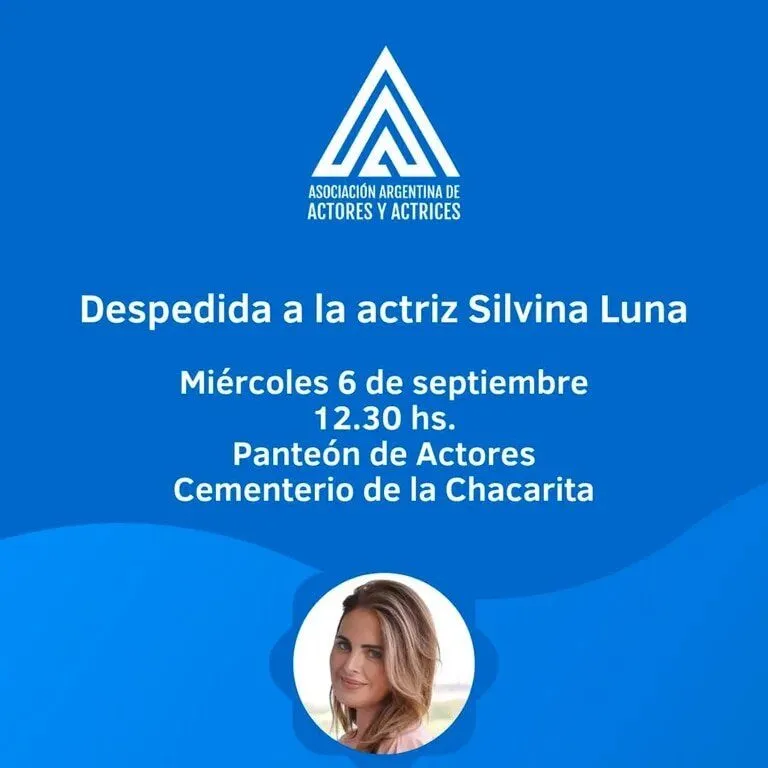 Posteriormente, la ceremonia de despedida se llevará a cabo en el Panteón de Actores del Cementerio de la Chacarita, a partir de las 12.30. La Asociación Argentina de Actores y Actrices comunicó que aquellos que lo deseen podrán acercarse para acompañar el último adiós a Silvina. El deseo de la modelo era descansar junto a sus colegas en dicho cementerio porteño.