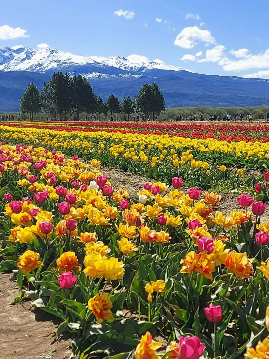 El campo de tulipanes de Trevelin es reconocido a nivel mundial, de diversas latitudes llegan hasta la Patagonia para conocerlo y miles de imágenes recorren las redes sociales en esta época del año.