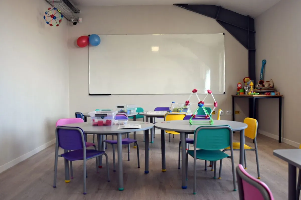 El espacio cuenta con seis aulas con una capacidad para 150 personas, una sala de reuniones y un buffet-office. Una sala de cuidados infantiles para que los niños estén cuidados durante la cursada de sus madres y padres.