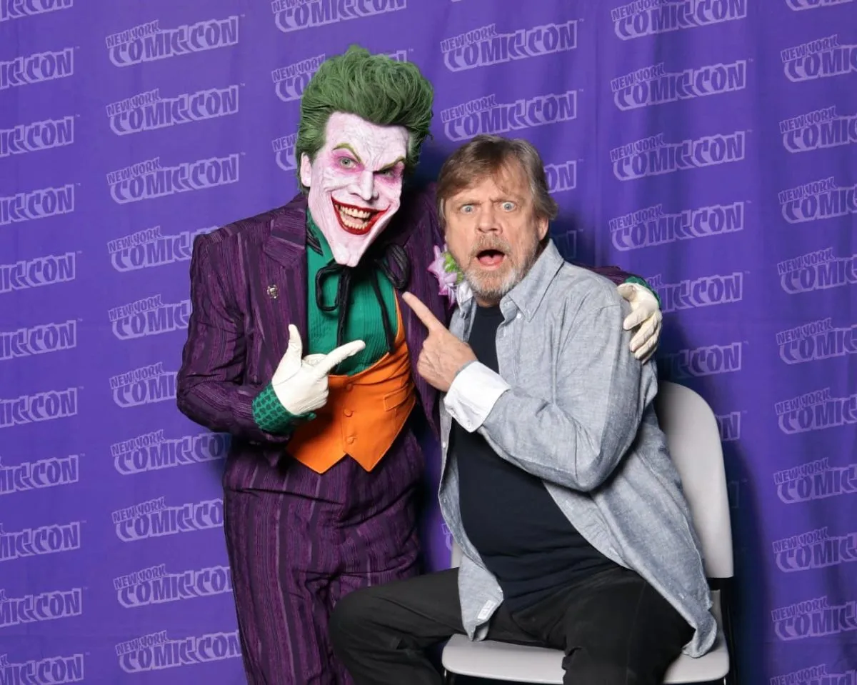 Ana y Alex acudieron “personificados” como Harley Quinn y el Guasón, y Hamill se sorprendió por la calidad del maquillaje y los felicitó.