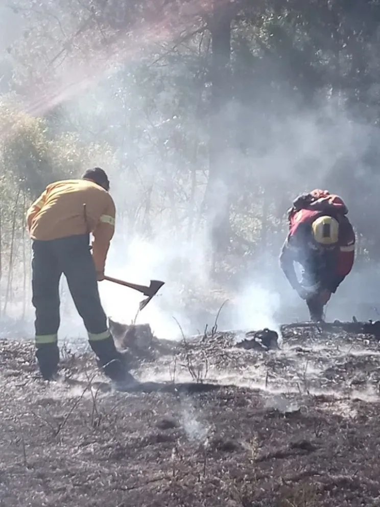 Debieron intervenir en el incendio de interfase originado por las chipas de una herramienta manual, operada cerca de vegetación seca, según informó Infochuaco.