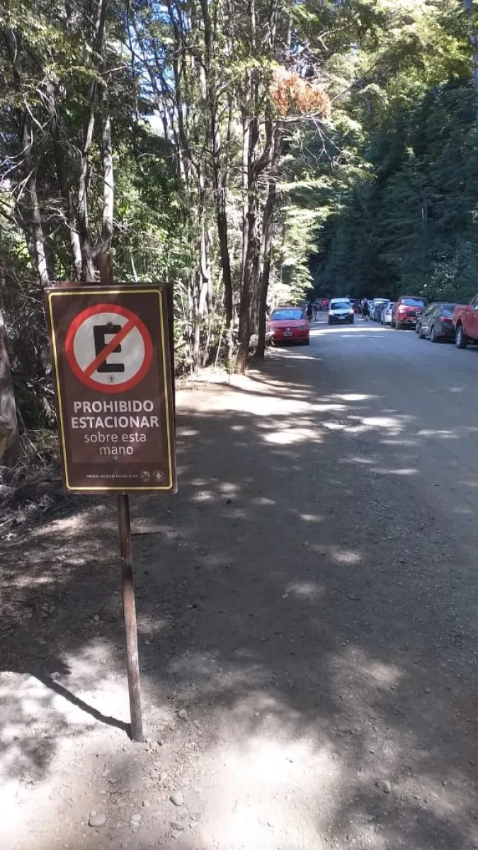 Autos mal estacionados no respetando el ordenamiento señalizado, sobre los árboles nativos e interrumpiendo la circulación para vehículos de emergencia.