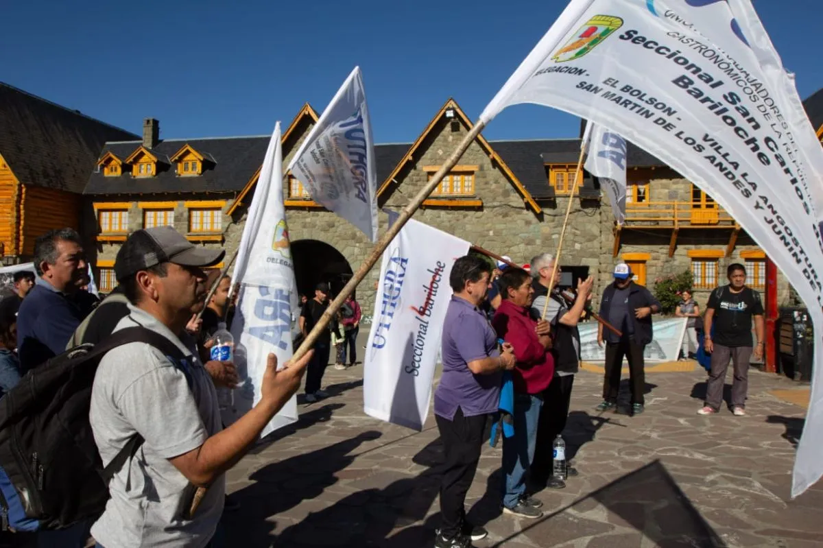 En el lugar está presente el intendente de Bariloche, Walter Cortés. “La ciudad siempre se constituye por trabajadores. La ganancia, lo que deja este Bariloche, se tiene que repartir con los trabajadores. No podemos podemos tener establecimiento sumamente ricos y que haya trabajadores pobres”, indicó al momento de tomar el micrófono.
