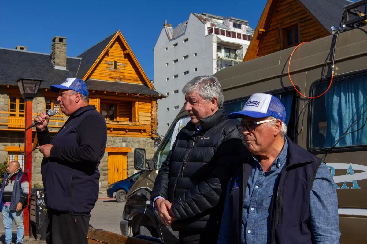 Luego de la entrevista, el secretario general de la UTHGRA barilochense habló ante aquellos que se acercaron al Centro Cívico.