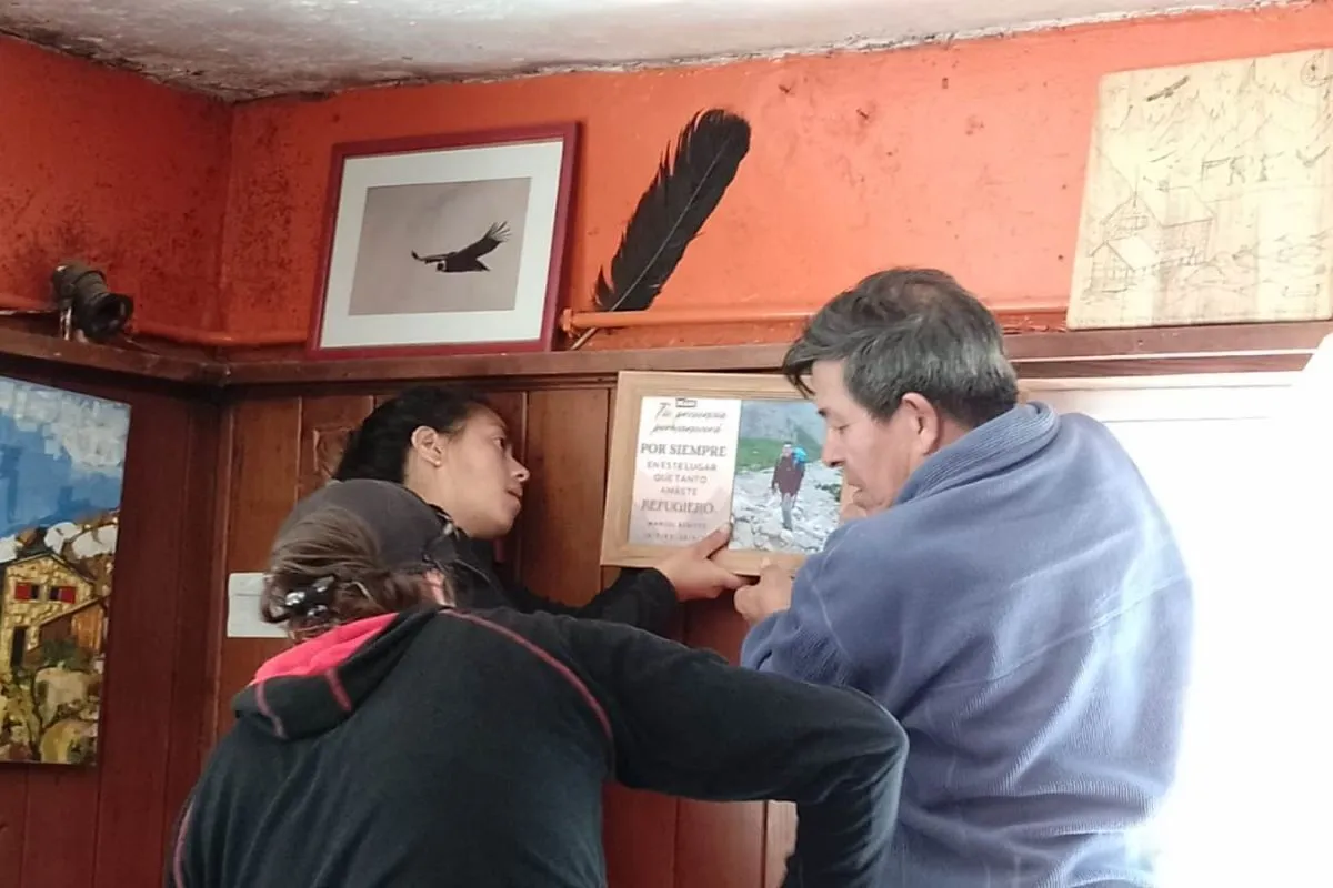 La imagen se encuentra junto a otra que conmemora a Ian Schwer, el andinista que falleció en Perú en 2019, quien estuvo a cargo del refugio.