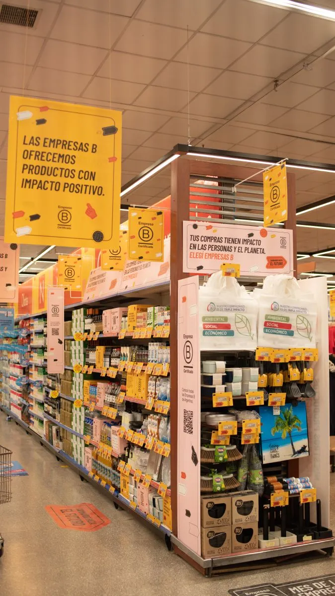 En el Mes de las Empresas B, la cadena de supermercados La Anónima interviene sus góndolas en sucursales de 8 ciudades del país para que los consumidores encuentren fácilmente marcas comprometidas con el bienestar de las personas y del planeta.