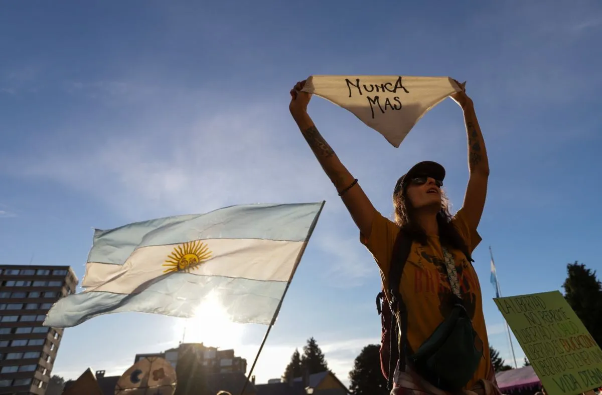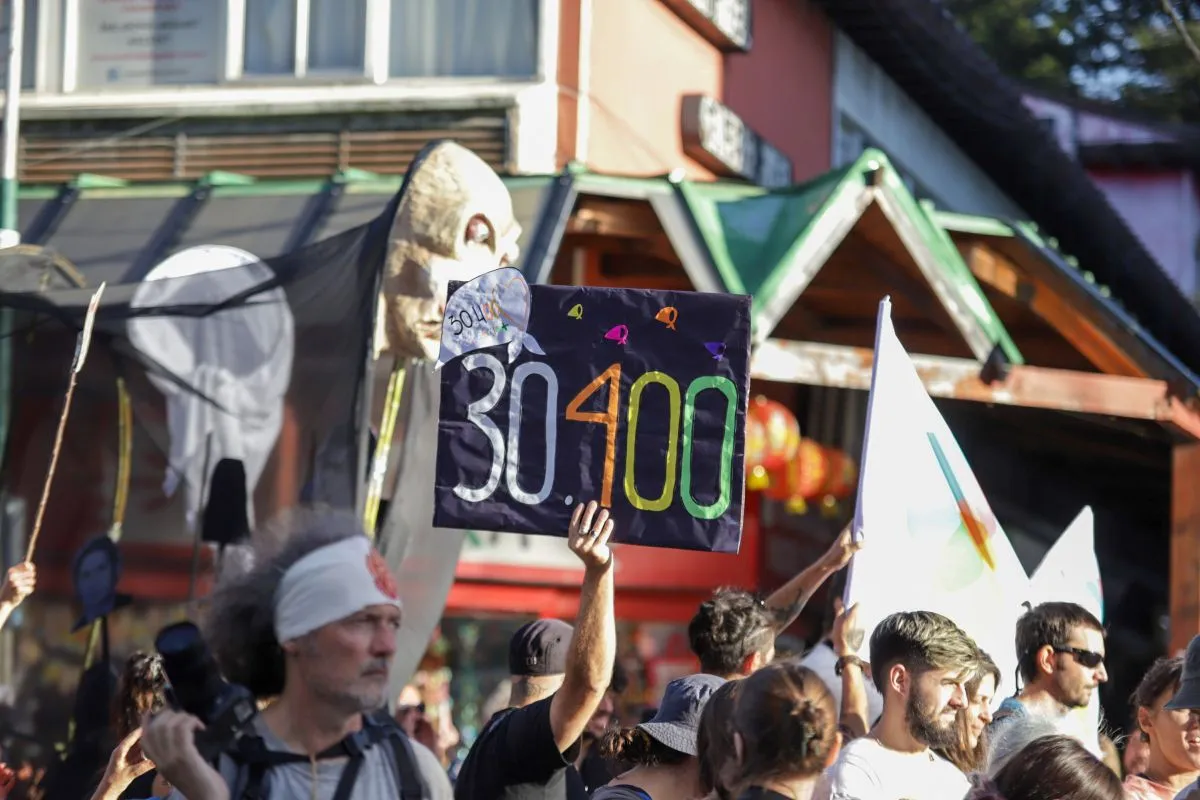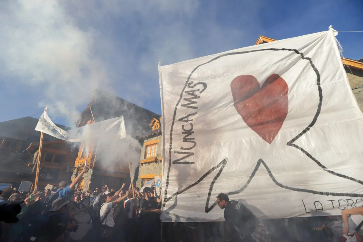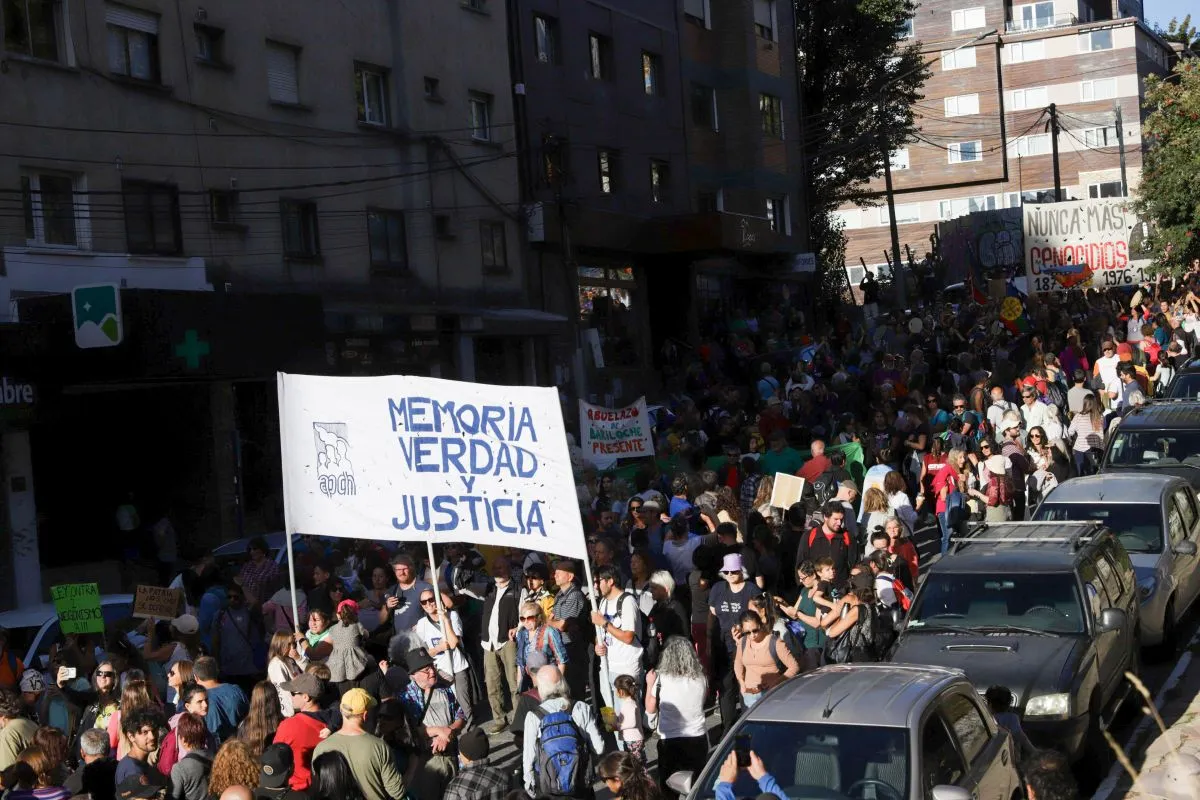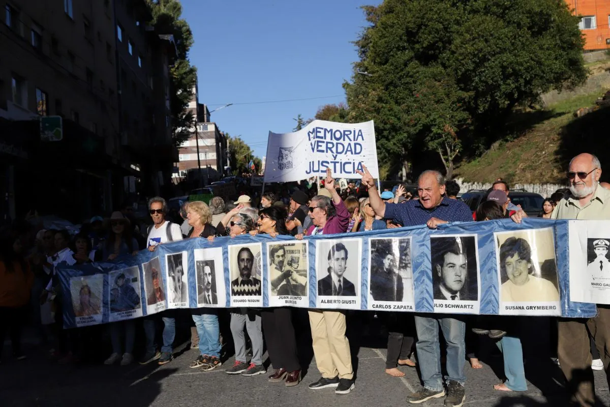 La gente que marchó por las calles barilochenses en el Día de la Memoria por la Verdad y la Justicia conformó un mapa humano de más de diez cuadras.
