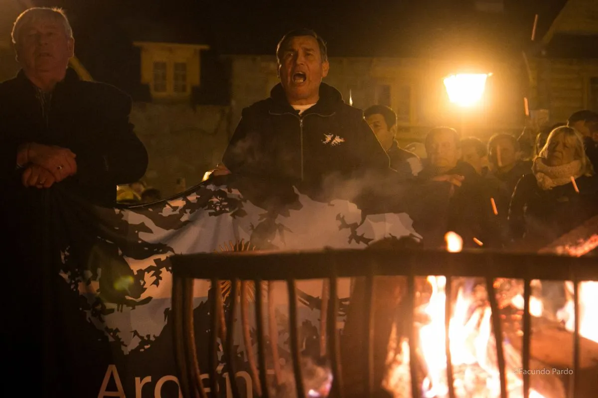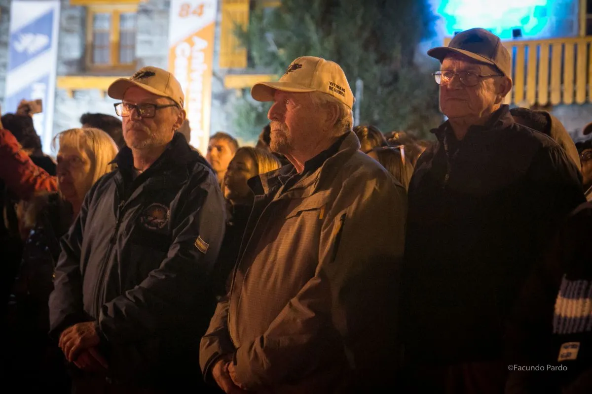 Se ven también figuras políticas, como la senadora Silvina García Larraburu y el intendente Walter Cortés, quien, al dialogar con algunos de los presentes, rememora cómo se vivieron en la Patagonia los tiempos de guerra.