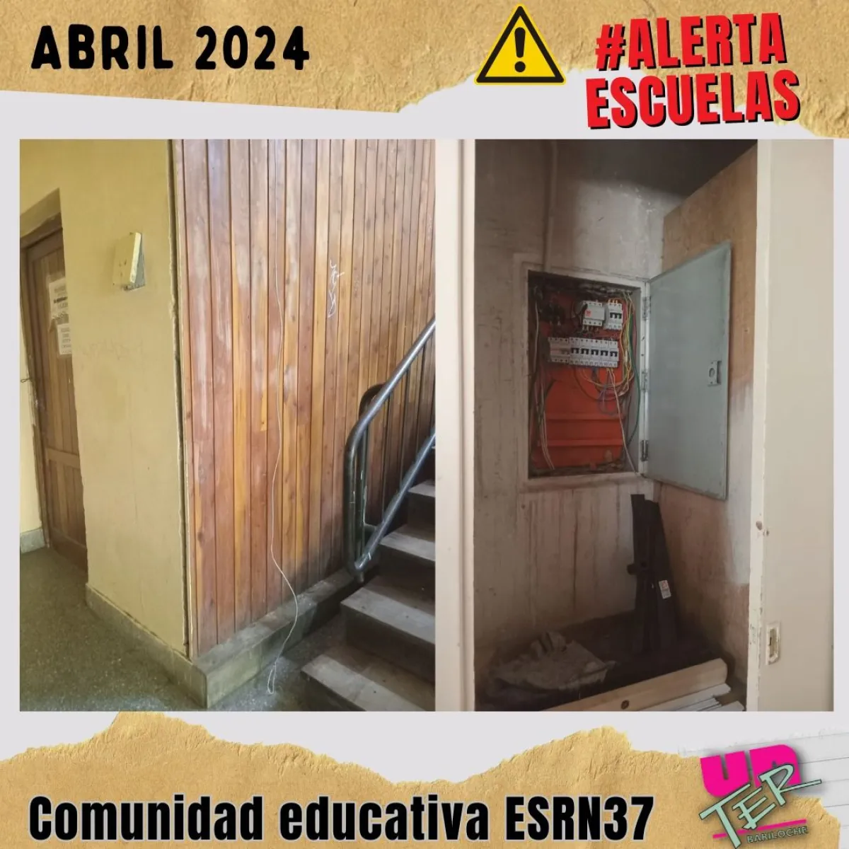 El pasado 3 de abril, delegados de la UnTER se acercaron a la ESRN 37 para dialogar con la directora, profesora Sabina Mesa, quien reconoció que las tareas de mantenimiento, refacción, reparación y/o reemplazo de elementos están pendientes, como en el caso de los baños, recambio de vidrios y pérdidas de gas, que han llevado a la clausura de artefactos esenciales.