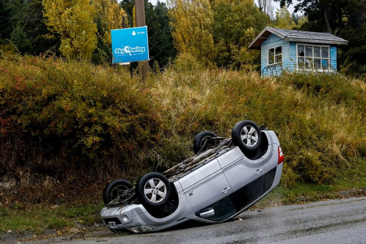 Una camioneta Suzuki JIII volcó poco después del mediodía de este lunes en el kilómetro 1 de la Avenida de los Pioneros, en circunstancias que son motivo de investigación.