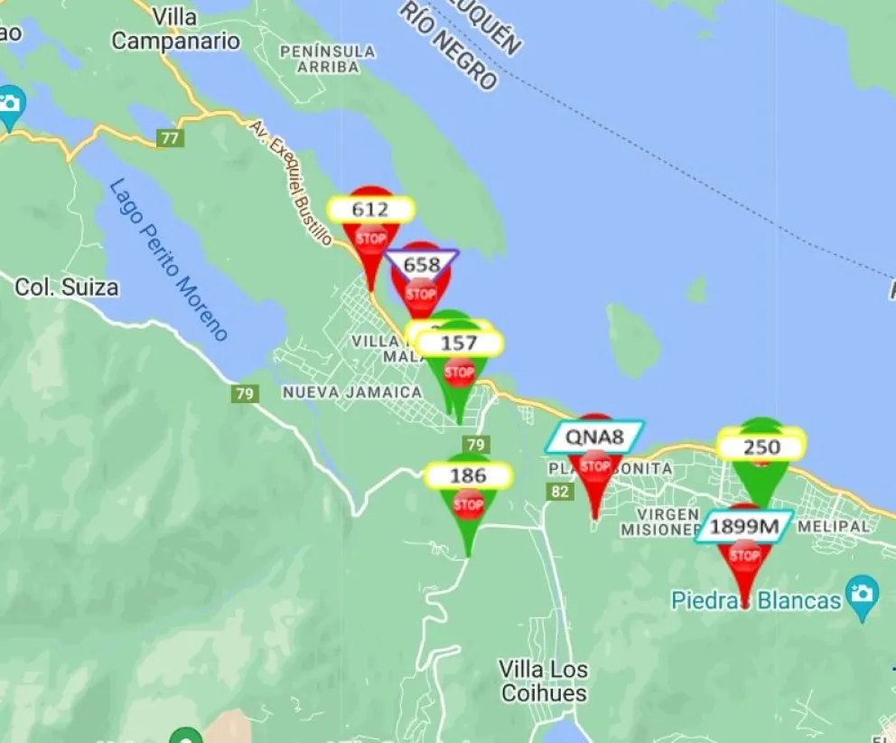 Las zonas donde trabajan las cuadrillas de la CEB este domingo, en el oeste de Bariloche.