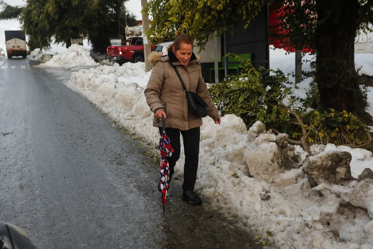 Este miércoles las precipitaciones níveas dieron un descanso a la población barilochense aunque la nieve acumulada en veredas y arterias de la ciudad, siguen complicando la movilidad de los transeúntes.