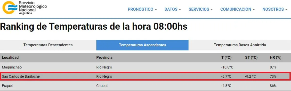 Bariloche fue la segunda ciudad más fría en la mañana de hoy
