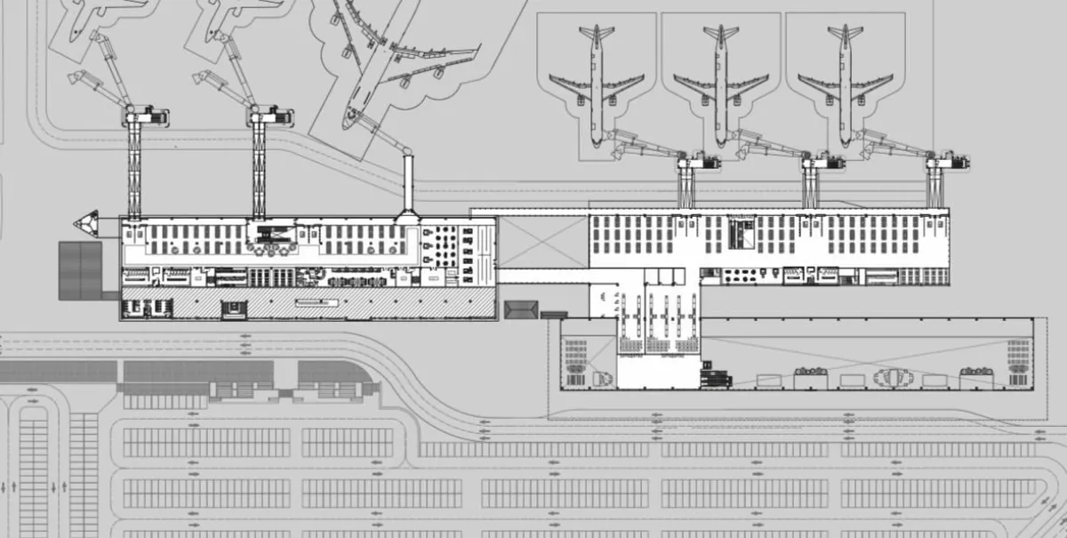 En la planta alta, en la terminal aérea existente se realizará una ampliación del sector de embarque internacional para generar un espacio más amplio y cómodo.