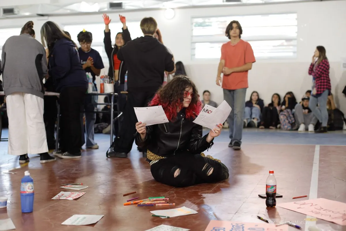 Estudiantes de la ESRN Nº 46 realizaron sentada para reclamar por el estado del edificio