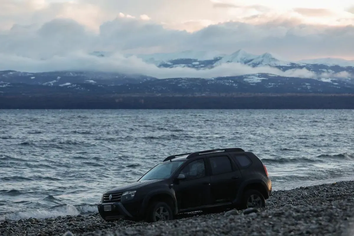 A pocos metros del agua, el vehículo amaneció paralelo al lago. Junto a él las huellas profundas de haber circulado por la playa aunque se cree que quedó allí debido a que perdió tracción y su conductor no tuvo chances de sacarlo.