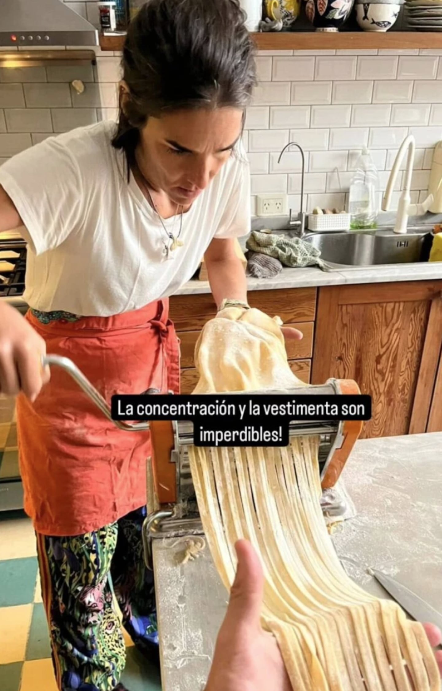 “Creando la magia con amor, errores, más amor y amor. La concentración y la vestimenta son imperdibles”, lanzó Juana en una de sus historias, mientras estiraba la masa que luego dejaría reposar por varios minutos, además de pasarla por la máquina pasado el tiempo de reposo.