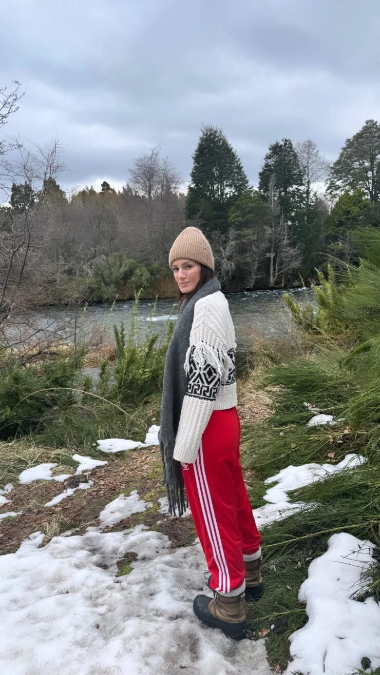 Uno de los detalles que más llamó la atención en las publicaciones de Paula fue su elección de vestuario para estas vacaciones. En su primera salida para explorar el lugar, la modelo optó por un conjunto athleisure que combinaba estilo y comodidad. Lució un pantalón deportivo rojo de Adidas, un suéter blanco con diseño alpino y flecos, completando su look con un gorro tejido marrón, una bufanda de lana gris y unas botas de caña media perfectas para la nieve. Este look no pasó desapercibido y rápidamente se convirtió en tema de conversación entre sus seguidores.