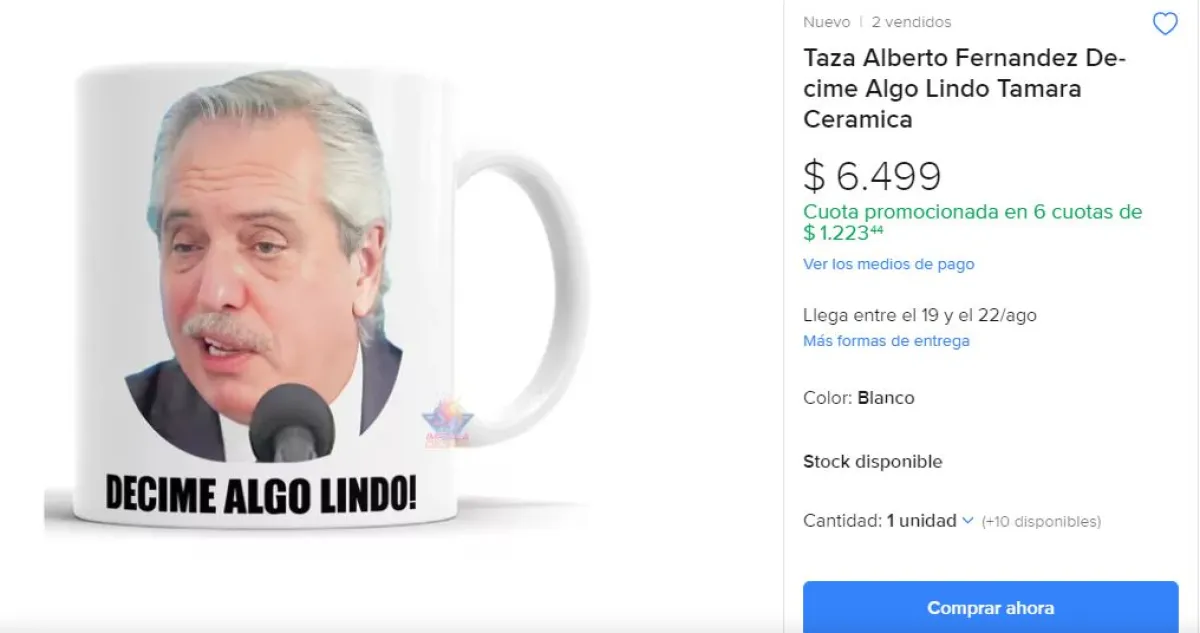 Muchos usuarios encontraron que cuentas dedicadas a sublimar objetos la taza con la cara de Alberto Fernández y la frase: "Decime algo lindo".