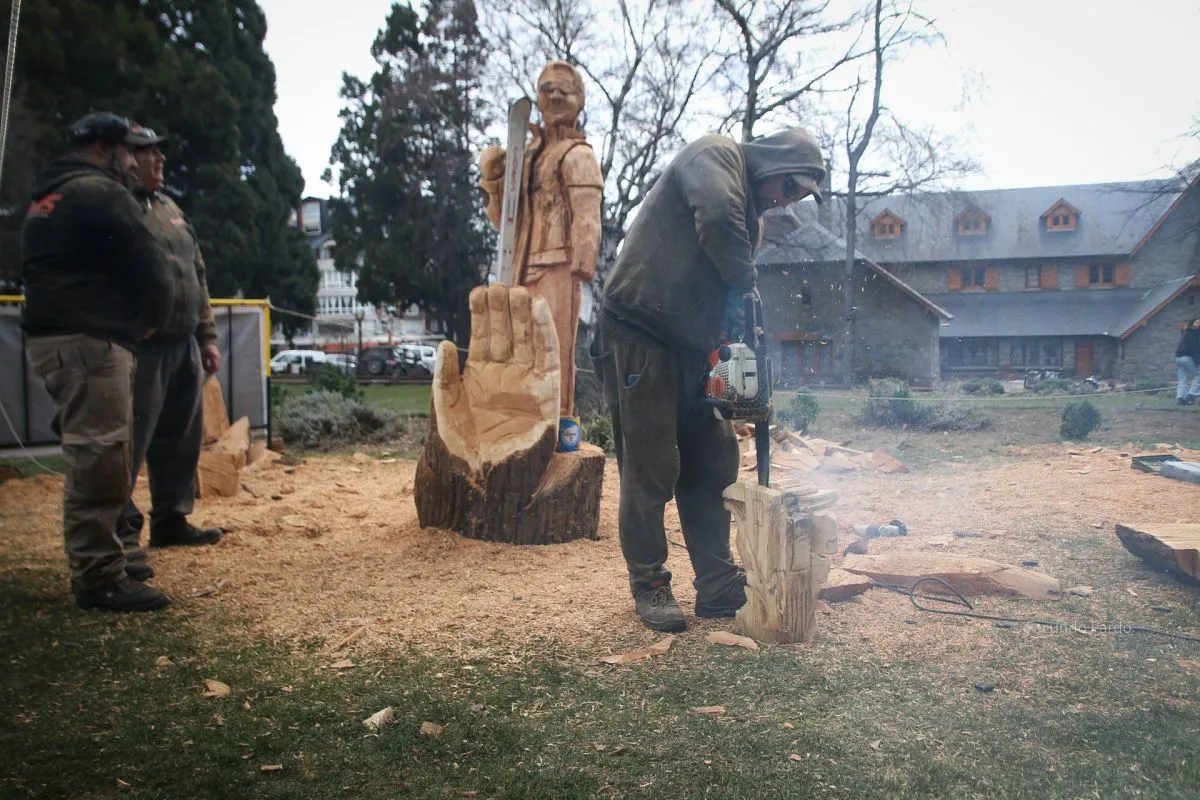 En el marco de la Fiesta Nacional de la Nieve se está desarrollando una actividad muy particular, la talla de esculturas en madera. Una de las obras que están creando es la figura de quien fuera José Luis Mezquida, impulsor de los encuentros de escultores en nuestra ciudad.